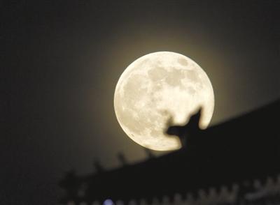 昨晚,在北京故宫角楼附近拍摄的圆月。当晚,时值月球全年距离地球最近的一刻,又恰逢“满月”,月亮看上去呈现最大最圆状态。 陈铎 摄新京报讯 (记者邓琦)“超级月亮,你看了吗?”昨晚,这句话几乎成了朋友们见面时的最佳开场白。昨日,2013年最大最圆的月亮现身天际,很多市民相约到户外观赏。不过,专家表示,“月亮”的“超级”程度,大家肉眼分辨不出,需要借助专业设备。