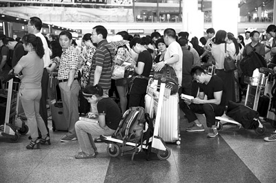 据相关统计,仅以国航为例,6月份因雷雨天取消航班共1200架次。但7月8日当天,国航就连续取消230架次航班,延误4小时以上的航班118架次。7月9日,首都机场取消航班233架次,延误1126个航班,延误率77%。