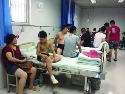 7名伤势较轻者在医院急诊室就诊。张凌飞 摄昨天下午,正在连云港市连岛度假区大沙湾浴场内游玩的20多位游客,突然遭到水母蜇伤,大部分游客经过景区卫生室简单处理后已无大碍,其中8人较为严重,被送到附近的解放军149医院进行进一步治疗。截至记者发稿时,8名伤者情况稳定,其中1人伤势较重已住院治疗。