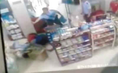 见女孩已经没了反抗,白衣男子用刀自残后倒地。此时,一民警继续喷辣椒水,另一个民警走到购物架后面,准备绕到歹徒后面。然而,该男子又爬起来,向女孩身上补了数刀后,再次倒下。