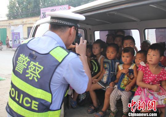 交警正在用数码鹰采集超员证据。 孔大龙 摄中新网沧州8月28日电 (陈昊 孔大龙 赵风东)河北省沧州市交警支队28日透露,26日17时35分,在307国道河北沧州境内沧县大褚村乡路段,执勤交警查处两部违规运载学生的“黑校车”,经调查,核载共15人的两部车内,共乘坐了72人,其中68名为幼儿。目前,涉事幼儿园经调查存在多处违规,已被当地教育部门责令停业整顿。