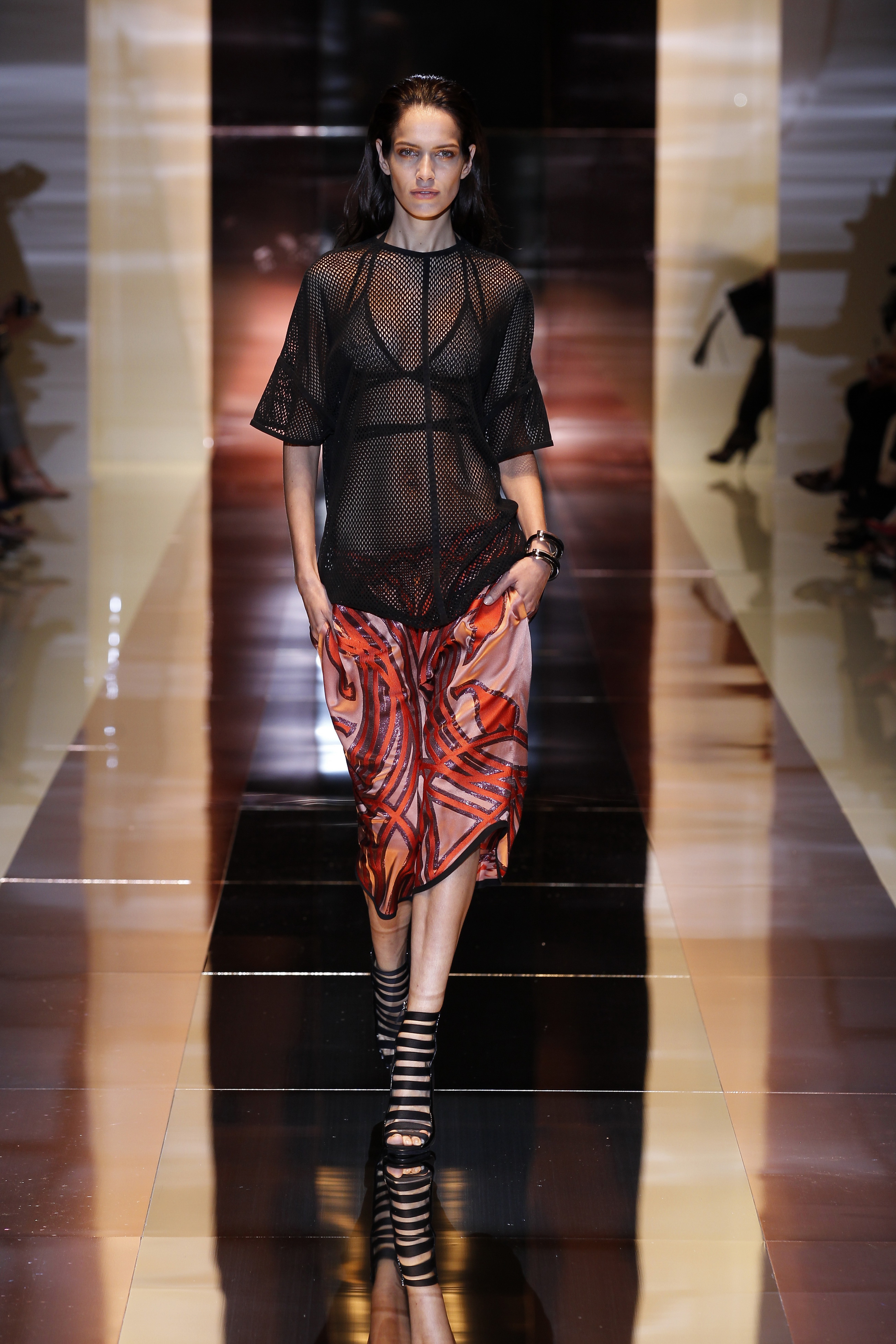 Alberta Ferretti的模特们身穿丰富的雪纺和花卉图案;普拉达今年走街头风,线条简单但是视觉丰富,Miuccia Prada用点缀刺绣的文胸,搭配足球袜。当然,普拉达的高跟鞋代表了意大利制造的最高标准。