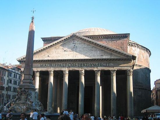 万神殿是古罗马精湛建筑技术的典范。它是一个宽度与高度相等的巨大圆柱体,上面覆盖着半圆形的屋顶。对面是罗通达广场,广场中央建有美丽的喷泉。万神殿是众神所在的神殿,几个世纪来,这里见证了历史的变迁。