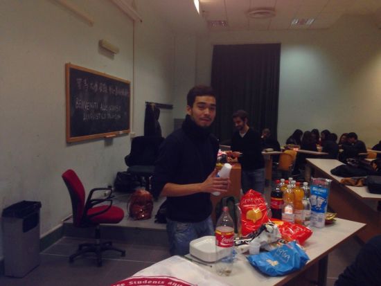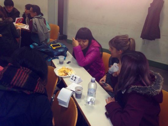 晚六点,语言园地活动正式开始,参与者以随机抽号的方式确定分组后就位。64位同学被分为11个语言小组,每组5-7名同学不等。待组织者宣布活动纪律(不许提前退场)后立刻开始热烈沟通。学联工作人员与意方组织者LIVIO、CARLO及“神龙”同学则充当服务员,为热聊中的学生们送上我们精心备下的饮料和甜点等。两个小时的时间在愉快的氛围中一闪即逝。当工作人员宣布因为时间原因,今天的活动到此结束时,仍有好多同学意犹未尽,不时询问下一期活动的具体安排。本次活动除罗马大学的中国留学生外还吸引了罗马美院、罗马三大、罗马庇护五世大学的中国学生,另有数名日、韩交换生赶来参加。