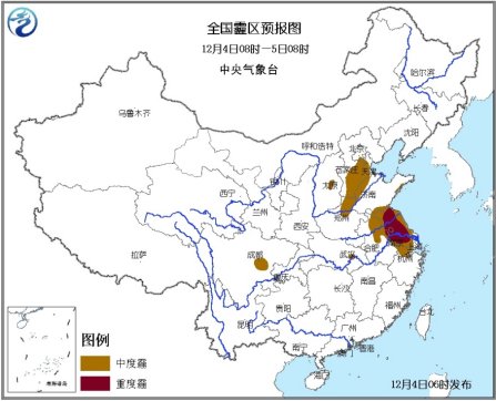 中新网12月4日电 据中央气象台网站消息,进入12月,中国中东部地区迎来了大范围雾霾天气。监测资料显示,相比前一日,昨天白天到夜间,京津冀及周边地区大气细颗粒物PM2.5浓度有所下降,但仍维持较高水平;长三角的江浙地区PM2.5浓度略有上升;珠三角地区PM2.5浓度明显升高。今晨,河北南部、山东大部、江苏大部、浙江北部等地空气质量为重度污染至严重污染。
