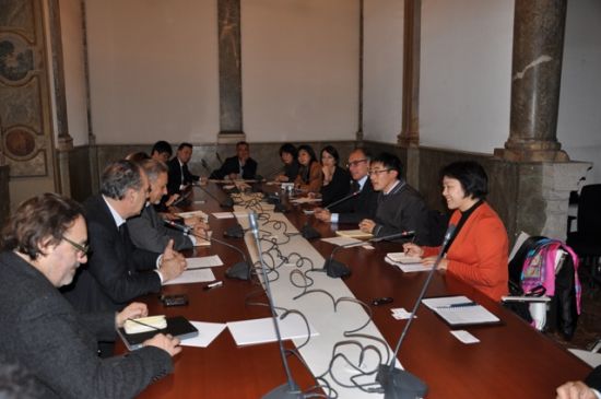 代表团围绕“意大利新闻产业发展及国际传播情况”访问意大利总理府新闻办公室、意大利贸促会、罗马市议会、意大利国家广播电视台、意大利梅地亚赛特电视台、环球时代媒体公司、中意杂志等单位,进行了深入交流。意方表达了重视意中关系,希望加强对华新闻文化合作的强烈愿望。