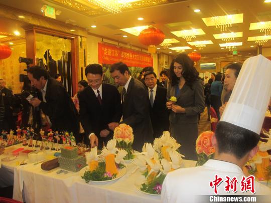 江苏淮扬美食节现场中新网南京12月23日电 据江苏省侨办消息,近日,江苏省政府和加利福尼亚州政府联合在洛杉矶四季新皇宫大酒店举办“走进江苏”系列经贸人文交流活动闭幕式暨江苏淮扬美食节。美国加州和洛杉矶市政要、企业家,江苏省政协领导和部分企业家,以及洛杉矶华侨华人社团及新闻媒体等共100多人参加了活动。江苏省政协何权副主席参加了活动并对淮扬美食节活动给予了肯定。