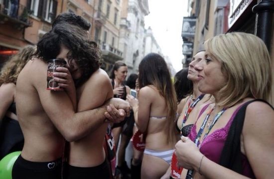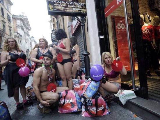 打折第一天,罗马一商家推出裸体进店免费穿衣活动