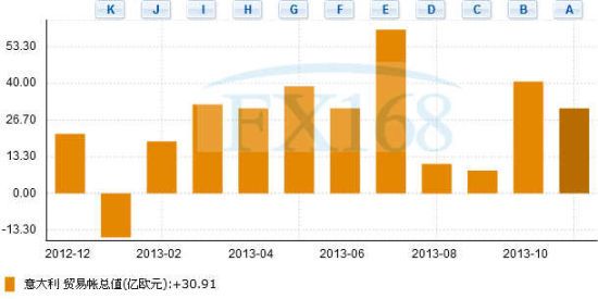 此外意大利11月季调后对非欧盟贸易帐盈余17.36亿欧元,前值盈余19.96亿欧元。