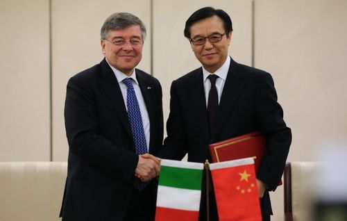 1月14日,高虎城部长在京与意大利经济发展部部长扎诺纳托签署了“关于成立中意企业家委员会的谅解备忘录”。
