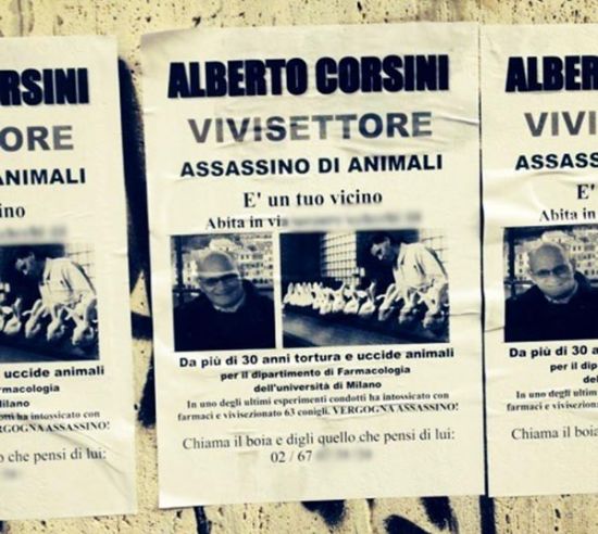 在意大利,有关动物实验的争论出现了令人不快的变化,一位匿名动物保护者张贴出印有米兰大学进行动物实验科学家的照片、家庭住址和电话号码的传单,并给他们打上了“杀人犯”的标签。这些传单引发了学术界和政治界的广泛谴责。