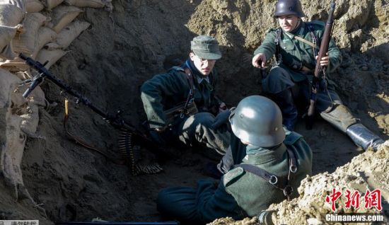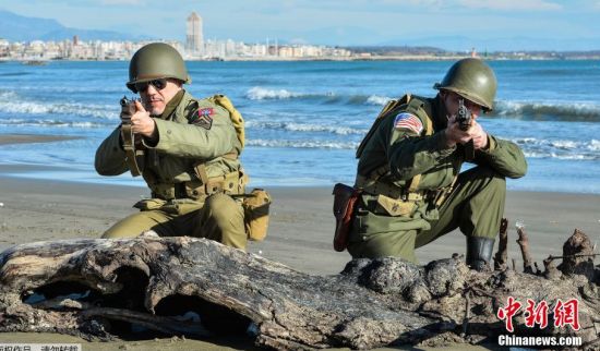 当地时间2014年1月25日,意大利安齐奥,二战历史爱好者穿着二战士兵服饰重新演绎了著名的安齐奥登陆计划。1944年1月22日,在距离意大利首都罗马45公里的港口小镇安齐奥,2个师的盟军部队突然登陆,试图协同意大利南部的盟军突破纳粹德军的“古斯塔夫”防线,却不料自此陷入了长达5个月的艰苦鏖战。虽然这支登陆部队最终解放了罗马,但数万人伤亡的代价和巨大的物资消耗,使这场胜利显得有些暗淡。