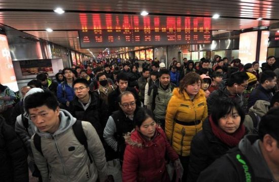 2月6日正月初七,2014全国春运迎来返程客流高峰。当日,北京西站预计到达旅客18.9万人,为了迎接返程高峰,西站将节前盯守的重点部位进站口调整为站台和出站口,在站台组织了10人的乘降小分队。同时,西站地铁站和出租车调度站都加派人手疏导旅客。另外,此前受中东部地区雨雪影响,京沪、京广、郑西高铁部分区段限速运行,致使多趟抵京的高铁列车晚点。图为北京西站出站客流。