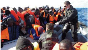 意大利海军救出1,123名坐充气船试图前往意大利的非洲移民。中新网2月7日电 据英国媒体7日报道,最近偷渡意大利的北非移民的数量已经达到破纪录的水平。