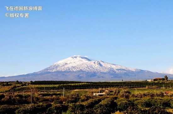 西西里岛就是一部巨大的露天博物馆,而这座博物馆的心脏,就是埃特纳火山。埃特纳火山位于西西里岛东部海岸城市卡塔尼亚(CATANIA)西部,是欧洲最高的火山,海拔3329米。在火山锥形山躯上常年积雪,远看俨然一座巍然屹立的雪山。埃特纳火山也是欧洲最活跃的活火山之一,常年有小范围的喷射,就在我们到达的前一个星期日,火山刚刚喷发过。至于看到火山口冒出白烟,就像家常便饭一样。
