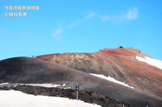 埃特纳火山上的风力极大,极冷。山下是夏天,山上是寒冬。建议上山的游客一定穿比较严实的防寒服,最好是连帽羽绒服。据说,山上也有出租羽绒服的地方。