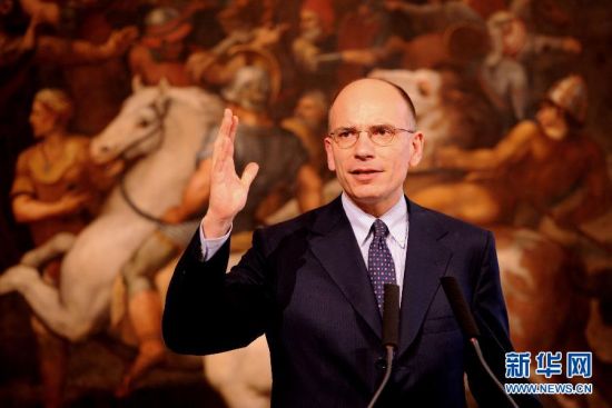 2月13日,意大利政府总理恩里科·莱塔宣布辞职。他是在自己所属的民主党高层投票表决支持更换政府以加快实施改革措施之后宣布辞职的。莱塔在总理府发表的一项声明中说,他已经通知总统纳波利塔诺,他将于14日前往总统府递交辞呈。这是2013年5月31日拍摄的意大利总理恩里科·莱塔的资料照片。新华社记者许逆之摄