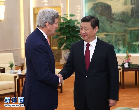 中新网北京2月14日电 (记者 张朔)中国国家主席习近平14日在人民大会堂会见美国国务卿克里。