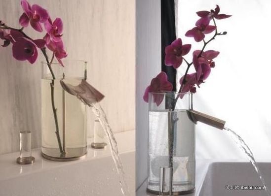 由意大利设计师 Davide Vercelli 为 HEGO 设计,把花瓶与水龙头(水龙头装修效果图)合二为一的作品,令用户冲洗双手的同时,亦带来视觉上的享受。由玻璃与不锈钢组成的水龙头,当开水时,水便会从下涌上地填满水龙头,然后再从上方的不锈钢出水口流水出来。这无疑是个新鲜的设计,然而用家必须留意花朵的情况,始终花无百日红,坏了以后可能连水也不清洁了。 然而这个设计的确吸引,若想两全其美,每天换上不同鲜花也可,除美观环境外,也令浴室每天有不同的清香。若觉麻烦,插上假花亦可带来异曲同工之妙。