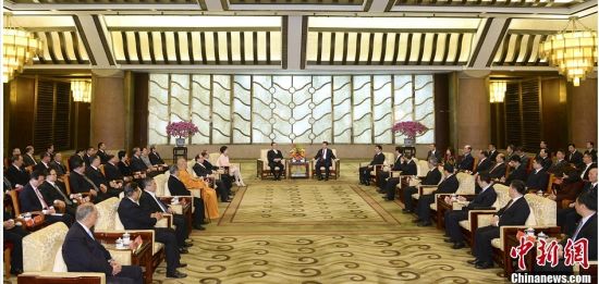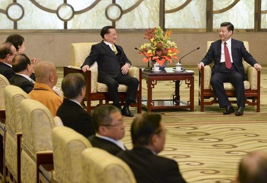 2月18日,中共中央总书记习近平在北京钓鱼台国宾馆会见了中国国民党荣誉主席连战及随访的台湾各界人士。中新社发 廖攀 摄