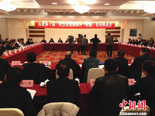 18日,温州市政协港澳海外委员座谈会现场。(徐乐静 摄)中新网温州2月19日电 (记者 张茵 徐乐静 实习生 董宇欢 张兴旺)19日,温州市“两会”进行时中,与不如人意的天气相比,会场上热闹的气氛足以令代表委员们振奋。