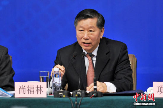 中国银行业监督管理委员会主席尚福林回答记者提问。中新网记者 金硕 摄中新网3月11日电 中国银行业监督管理委员会主席尚福林今日介绍,民营银行试点开闸,首批确定五家。