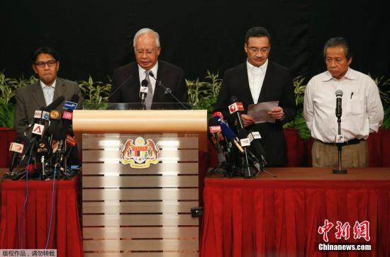 当晚,马来代理交通部长希沙姆丁、马来外长阿尼法•阿曼及马来民航局总监阿兹哈鲁丁陪同纳吉布一同出席的发布会。纳吉布一行在发表完声明后便离开发布会现场,并未回答记者提问。