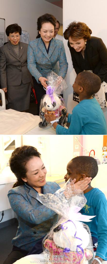 彭丽媛在巴黎尼克尔儿童医院看望患病儿童