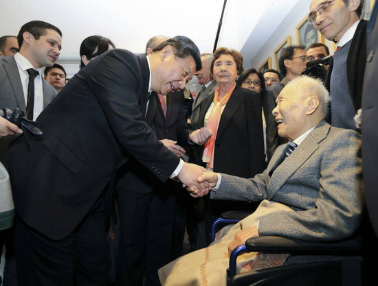 习近平感谢里昂市倾注大量精力,使这批历史资料保存完好。听说习近平要来参观,99岁高龄的著名旅法华人翻译家李治华坐着轮椅回到母校。他曾历时27年翻译完成法文版《红楼梦》,是将这部中国古典名著介绍到法国的第一人。习近平亲切询问他的身体和生活状况,称赞他的执着精神和学术才华令人钦佩,是里昂中法大学学子的杰出代表。