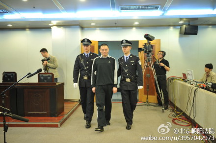 图据“北京朝阳法院”微博中新网4月17日电 据央视消息,网络推手秦志晖(网名:秦火火)涉嫌诽谤、寻衅滋事一案,今日上午在北京市朝阳区人民法院第三法庭公开宣判。法院判处被告人合并执行有期徒刑3年。