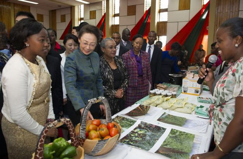 中新网内罗毕5月10日电(记者 郭金超)10日,李克强总理夫人程虹在肯尼亚总统夫人和副总统夫人的陪同下参观了快乐妇女组织。该组织用小额贷款支持农村妇女种植蔬菜、制作手工艺品等以提高家庭收入。程虹与受益于该组织的一些妇女交流,赞扬她们自食其力、补贴家用,还现场购买手工艺品以示支持。
