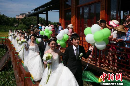 全国各地的九对新人感受浪漫田园婚礼中新网琼海5月20日电 (陈少婷 吴天军)“我等这一天整整等了385天。2014,520,我爱你一生一世!”5月20日,在浪漫的田园求婚仪式中,一场特别的田园集体婚礼在琼海塔洋七星伴月景区中拉开帷幕。 当日,海南首个“婚纱旅拍”目的地启动仪式举行,来自全国各地的九对新人成首批体验者。