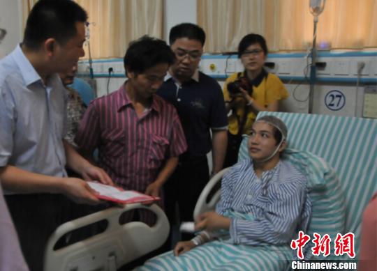 6月9日下午,受共青团中央、全国学联委托,共青团江西省委副书记伍复康来到宜春市人民医院,看望了正在接受治疗的柳艳兵、易政勇同学,并颁发江西省“希望之星”见义勇为好青年荣誉证书,送去慰问金。