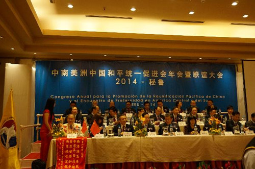 23日上午,访问团出席了在秘鲁利马举行的中南美洲中国和平统一促进会2014年会,刘建平代表上海市侨办讲话并表示祝贺。