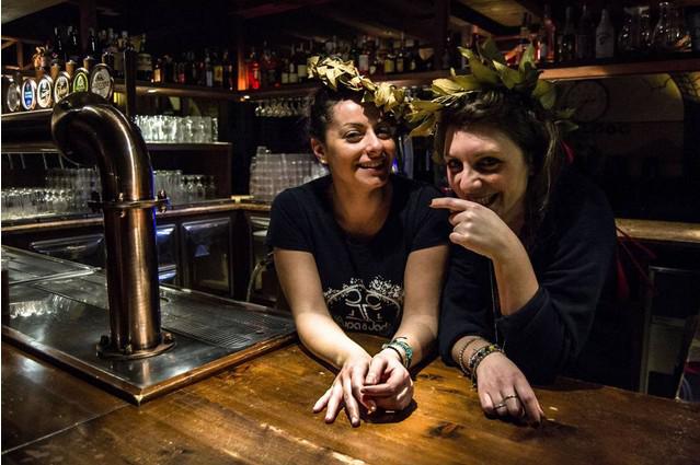 左边是陆琪娜,28岁,不久前离开酒吧服务员的工作:“我搬到北京半年了,在这里我为一家餐厅做活动组织。工资大概是1100欧元每个月,但是每组织成功一场活动我还可以得到相应的佣金。我毕业于米兰圣心大学的国际关系和语言专业,中文是我学习的第二语言。”右边是克里斯蒂娜,毕业于心理学专业,至今仍然在酒吧做服务员。