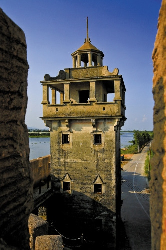 冈宁碉楼矗立在潭江畔电影《让子弹飞》里,大腕儿姜文、葛优、周润发上演落草大将张麻子与师爷、恶霸斗智斗勇的故事。人物身后历经风雨的碉楼骑楼、老镇城墙,让人穿越百年沧桑,更令这个充满传奇色彩的取景地“鹅城”一夜成名。“鹅城”其实就是冈宁墟,一个位于中国第一侨乡——广东台山市水步镇的侨墟。