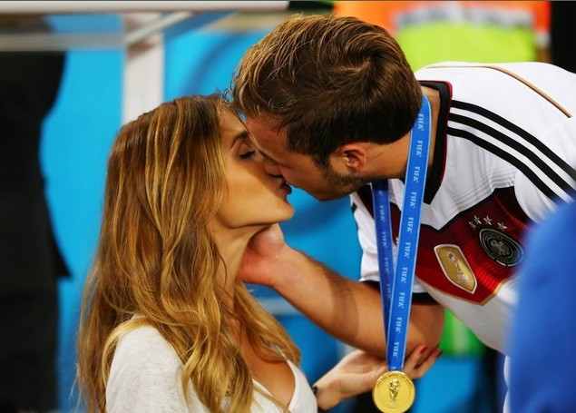 巴西世界杯决战中,马里奥·格策于113分踢进致胜一球,帮助德意志第四次捧下大力神杯,终场哨声想起的那一刻,这位22岁的德国足球神童,冲向场边,捧起以为一位妙龄少女的脸,深深地吻了下去,庆祝这历史性的一刻……她,就是大格策两岁的名模女友Ann-Kathrin Brommel。