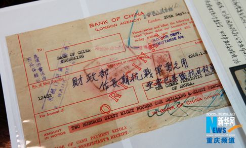 南美华侨为抗日捐款注明“作长期抗战军需之用” “这笔款项是汇到云南楚雄的,当时远征军长官部驻扎在那里。”重庆民间收藏人汪先生(应采访对象要求)指着一张时间标记为1943年的旧票据向记者说,像这样与抗战有关的金融票据,他还有将近万张。