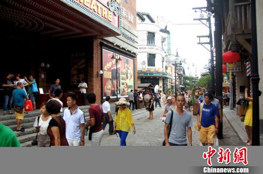 记者在观澜湖冯小刚电影公社看到,上午十点客流量已经开始上涨,停车场里川、粤牌照的自驾车很多。电影公社干净整洁,为了增添活动气氛沿街点缀了大红灯笼,精致复古建筑让游人拍照连连,路边一辆黑色的复古老爷车自然成为游人竞相合影留念的吸引物,一路上游人们走走停停拍照取景怡然自足。除了精妙绝伦的民国建筑,穿着长袍、马褂、学生裙的摊贩档口分布在不同的街道或者路口,火红的糖葫芦、形态憨态可爱的糖人儿、古香四溢的手串小物件、九州小吃美食、训白鼠表演、看相算八字的老先生、穿着汗衫的黄包车……为古香古色的街道增色不少。