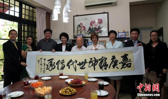 9月22日,正在新加坡访问的中国海外交流协会常务副会长裘援平看望已故知名侨领陈嘉庚的后人。陈嘉庚先生排行第七的儿子陈元济,陈嘉庚之孙陈君宝、孙女陈佩仪等与代表团围坐在一起“话家常”。面对陈家后人,裘援平首先道一声感谢,她说:“再过些天,就是嘉庚先生诞辰140周年,我们永远怀念他、纪念他。”图为裘援平一行向陈嘉庚后人致赠字幅。中新社发 符永康 摄走华社、访华商、看华校……中国海外交流协会常务副会长裘援平15日至23日先后访问缅甸、印度尼西亚和新加坡,在一周多时间里参加30多场走访活动、26场交流互动。