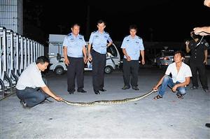 警方提醒,秋季到来,蛇常出没捕食,威胁到人民群众的生命财产安全,如遇蛇时,应谨慎处理或及时报警,切勿轻易抓捕,以免被蛇咬伤。蟒蛇属于国家一级保护动物,不可捕杀,抓获蟒蛇后应将其放生或是交给相关部门处理。(深圳晚报 记者 陈晓鑫 实习生 郑志荣)