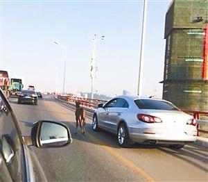 女子在大桥上开车遛马 被警方拘留5天(图)