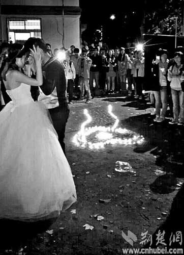 武汉女生在男寝楼下穿婚纱向男友求婚(图)