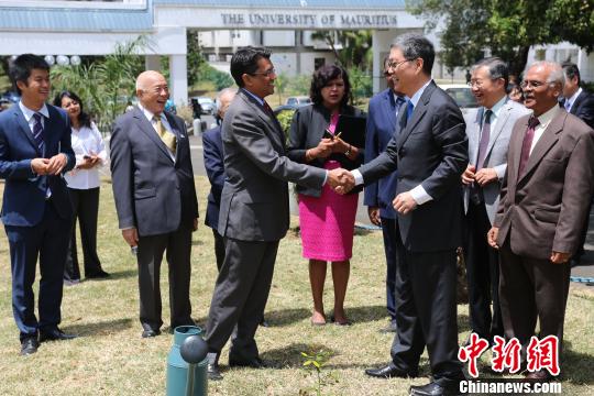 何亚非一行访问毛里求斯大学。中国侨网北京10月24日电 (记者 杨凯淇)10月20日至22日,国务院侨办副主任何亚非率代表团一行访问毛里求斯,他指出,华人华侨发挥着无法取代的“桥梁”作用,为中毛交流做出了突出贡献。