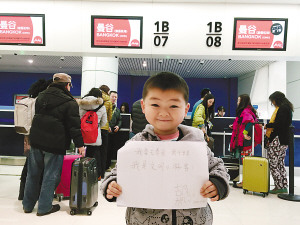 泰国餐厅用餐“我是文明小游客,文明出游,自觉排队!”“我是文明小游客,我不浪费粮食。”最近,网友张芊在天使妈妈网发出4岁儿子胡桐去泰国旅游时的一组照片,得到了不少人的赞许。在这些照片上,胡桐或举着手机、或拿着平板电脑,上面写着倡导文明出游的标语。张芊说,4岁的胡桐一路上拿着这些标语拍照,不仅改变了自己,也感染了身边的人。