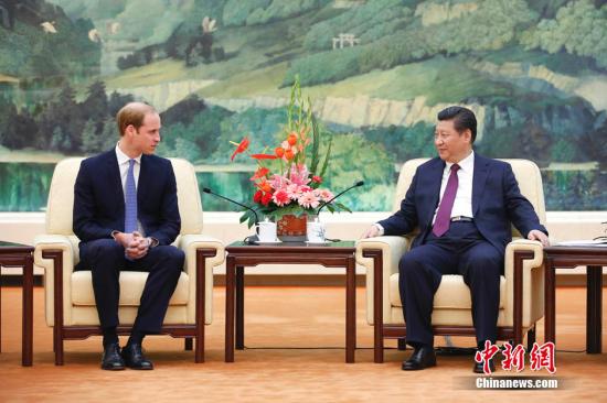 习近平首先欢迎威廉王子访华,请他转达对伊丽莎白二世女王的诚挚问候和良好祝愿,表示期待年内应女王邀请访问英国,同英国领导人共同规划中英关系未来发展。