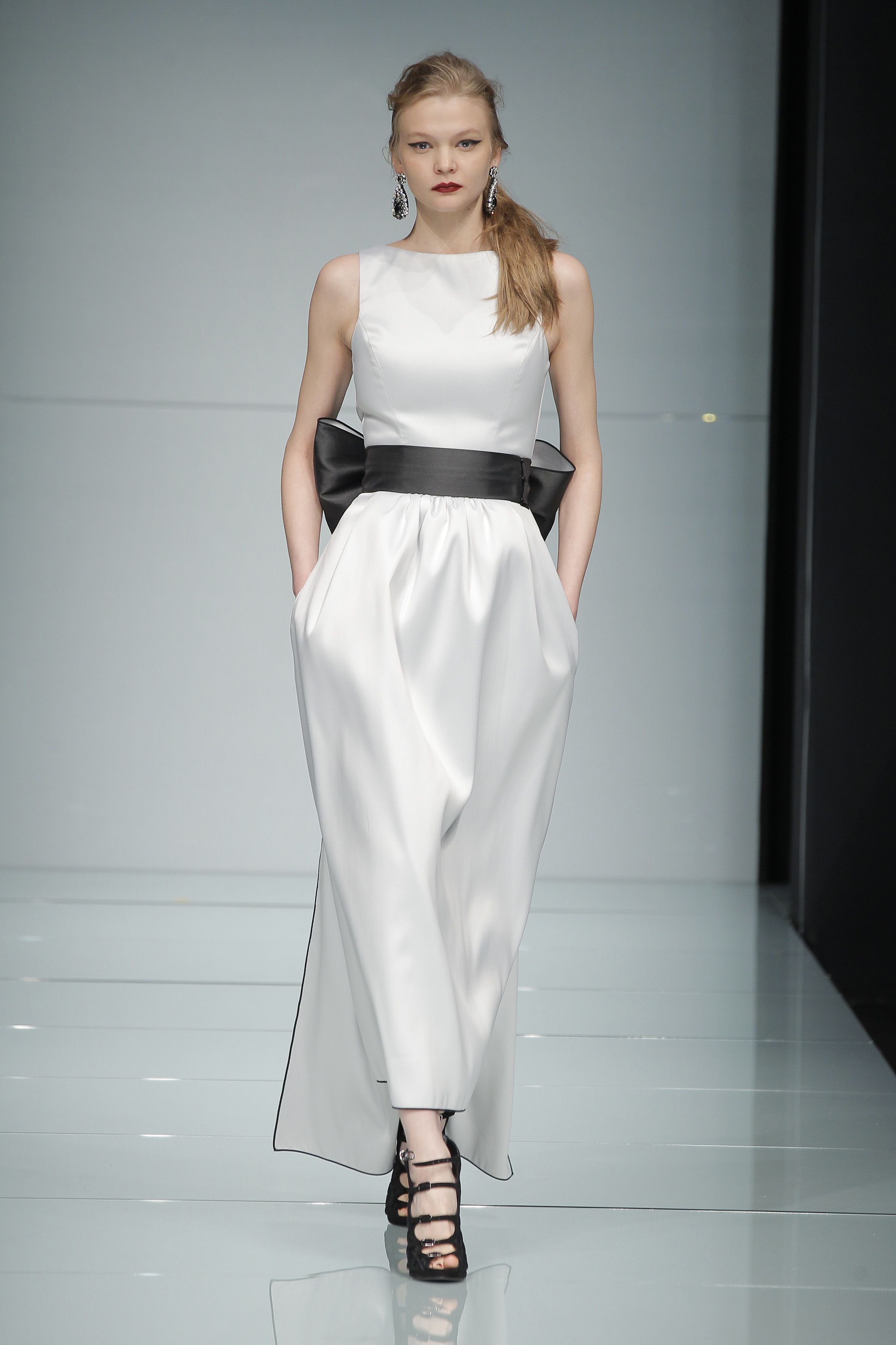 此次女装周首先映入众看客眼帘的是品牌Chicca Lualdi,简洁干净的设计、60年代的复古风,紧凑有质感的新型面料,麋鹿皮与雪纺的巧妙搭配,狐狸领牛仔、硬纱提花等元素都在秀台上吸引了众多的眼球。60年代的代表人物奥黛丽赫本 也成为了此次Rocco Barocco的展台元素之一,品牌来自那不勒斯的设计师为了彰显女人极致妩媚的高雅,推出莱魅紧身衣以及尽显流线之美的长款服饰作为新款。同样抢眼的还有该品牌的腰部配饰,不论是皮带与复古腰带,都是小西服与华丽的卷边服饰的绝好搭配,那么本季最潮的颜色是什么呢?Rocco Barocco也给出了答案:非黑色莫属。