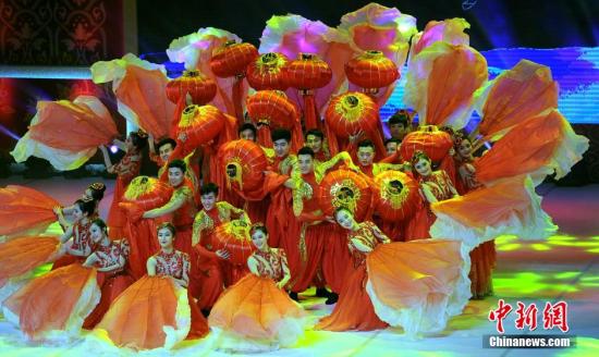 国务院侨办、澳门归侨总会合办的“文化中国·四海同春”春节慰问演出,3月18日晚在澳门文化中心上演。图为歌舞《花开幸福年》。中新社发 谭达明 摄 启程日,京城雪尚飘;归来时,枝头春意浓。