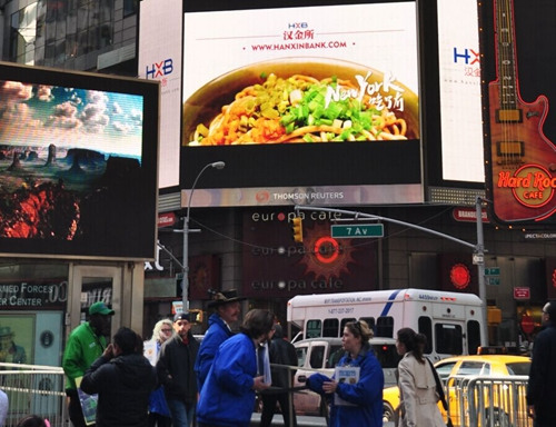 热干面广告亮相时代广场刚刚过去的五一假期,热干面成功跻身头条。“路过时代广场,居然看到了我大武汉的热干面!”,一位在纽约的武汉网友拍下了时代广场大屏幕上的热干面广告,照片中,一碗让人垂涎欲滴的热干面和“New York,吃了冇”的方言问候语甚是醒目。