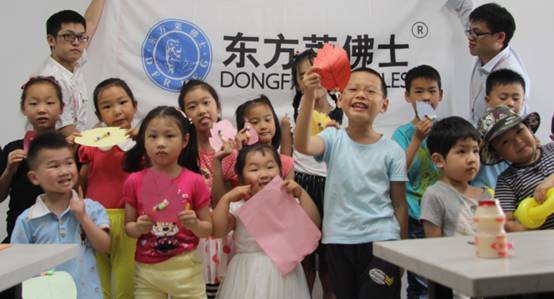 图为活动结束后小朋友们兴奋的拿着自己现场创作的作品合影